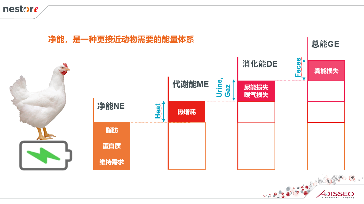 nestor不僅靶向更精準,還能關照到整個價值鏈的相關方,如動物本身、動物飼料配方師、科研工作者、農場主等。飼料配方系統(tǒng)中使用的能量系統(tǒng)越精準,配方師們設計出來的飼料配方就越接近動物生產的實際需求,很多能量系統(tǒng)都被用于制作單胃動物的飼料配方,但凈能體系是最合適的,因為它最接近于動物的實際需要。